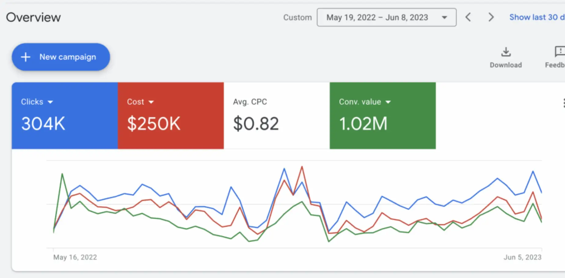 Campaign dioptimasi untuk mendapatkan klik relevan dari pengguna yang aktif mencari produk terkait. Grafik menunjukkan peningkatan trafik stabil setiap hari dengan biaya per klik yang tetap efisien.