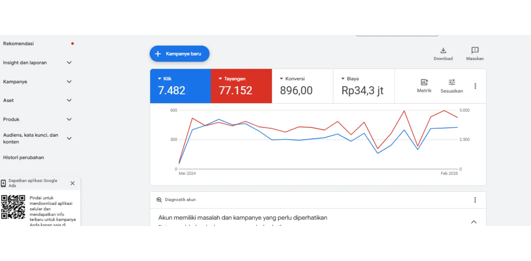 Setiap performa iklan dapat dipantau secara jelas mulai dari klik, tayangan, hingga konversi.